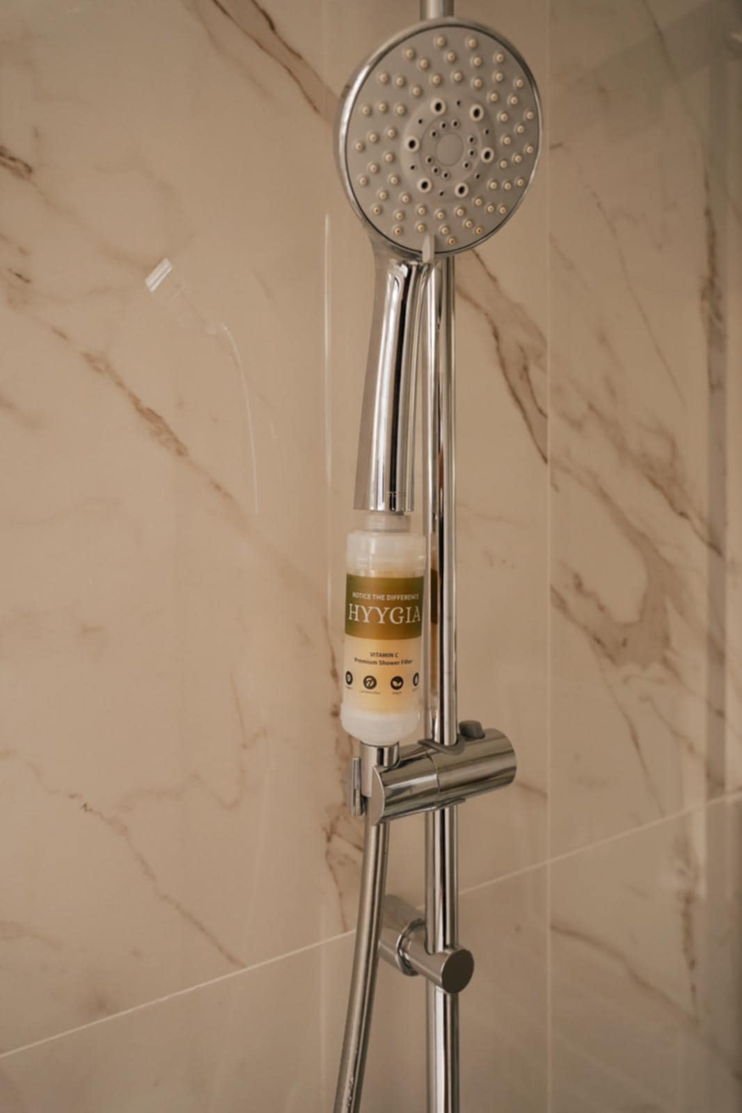 HYYGIA isn’t just a filter — it’s a skin-first shower upgrade. Infused with a Korean skincare formula, our filter removes chlorine and harsh chemicals while releasing nourishing active botanicals like Vitamin C, Jojoba Oil, and Probiotics. This dual action both protects and treats the skin and scalp during every shower. Backed by science and dermatologist-tested, HYYGIA helps rebalance your skin and hair from the first rinse.